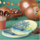 Inspired by the boardshorts and aloha shirts of the sixties, this pattern uses pin- stripes to create the shoreline as the surfers wait for the break at Big Sunset on the North Shore of Oahu. There are other home decorating items in the same design. The pattern comes in several colorways. The paper napkins coordinate with the paper plates.
