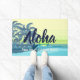 Lime green, turquoise and navy blue colorway. The message of Aloha welcomes your visitors to your own tropical paradise. Inspired by the boardshorts and aloha shirts of the sixties, this pattern uses pin- stripes to create the shoreline as the surfers wait for the break at Big Sunset on the North Shore of Oahu. You can customise the message.