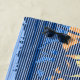 Natural, Blue and orange colorway. Inspired by the boardshorts and aloha shirts of the sixties, this pattern uses pin- stripes to create the shoreline as the surfers wait for the break at Big Sunset on the North Shore of Oahu.
