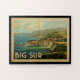 Big Sur California design in Vintage Travel style featuring the Bixby Creek Bridge and the Pacific Ocean.