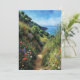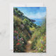 This postcard features a watercolor portrait of a hiking trail surrounded by colourful wildflowers in Big Sur, California.