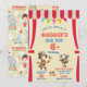 Circus themed any age birthday invitation, perfect invitation to invite your guests to your big top birthday party. Front features a big top tent with bunting banner, ring master, performing elephant and circus flag. Back of invitation has circus print, elephant, clown and performing seal. Edit all the text yourself when you order.