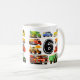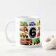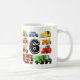 Nine bright colourful trucks surround a great big number 6! Add your own age! A green and yellow cement mixer, blue pick up truck, yellow bulldozer, orange dumper truck, red road roller, green tractor and trailer, big red firetruck, yellow digger and a builder's red truck! All kinds of transport, the big trucks that kids love! Perfect for your fire truck, digger, truck or tractor mad 6 year old on his or her 6th Birthday. Wonderful for a Truck Themed Birthday Party. Kids love Firetrucks, Trucks, Diggers and Tractors and six year olds love them most of all! More great ideas for a truck themed kid's birthday party gifts from TruckStore