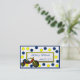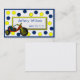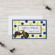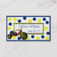 This cute children's calling card / enclosure card has a frame of blue and yellow polka dots and cute graphics of a Big Wheel. Customise the text fields with your child's information.