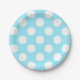 Big White Polka Dots on Summer Sky Blue Paper Plate