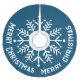 Big White Snowflake, Merry Christmas White on Blue Brushed Polyester Tree Skirt