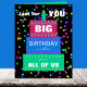 This big work birthday card from group features a three layer cake on the large birthday card. The card reads "Just for You Big Birthday wishes from all of us". Inside, the words Happy Birthday appear in large print. This makes a great birthday card from a group of people. Copyright Kathy Henis
