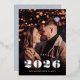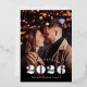 Add your favourite vertical / portrait orientated photo to this bold and festive 2023 new year card. Full bleed design features a white text overlay with "Happy New Year" curving over the year in bold silver foil retro style lettering. Personalise with your names or custom greeting beneath.