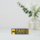 Mini business card for taxi companies. Features a yellow taxi with a 3D effect from above on a street. Front with big yellow "TAXI" letters and phone number. Your flagship for your taxi company, taxi driver and transportation service provider.