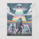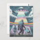 Bigfoot, Alien, and Unicorn with a UFO Postcard