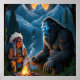 Bigfoot and a noble Indian chief sharing a timeless moment of connection by the fire.
