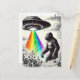 Bigfoot looks up at a UFO as we walks in a wildflower meadow AI generated art