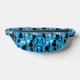 Fun Bigfoot themed blue fanny pack featuring Sasquatches hiding amongst the forest trees and mountains. There's a monogram circle on the front to add your own initial