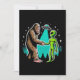 This whimsical image illustrates a friendly encounter between two legendary beings: Bigfoot and an alien. The scene, set against a starry night sky with silhouettes of pine trees, shows Bigfoot and the alien shaking hands under the beam of a UFO hovering above. Bigfoot, covered in brown fur, stands on the left while the green, humanoid alien with a large head and black eyes stands on the right. The combination of these iconic figures in a peaceful meeting adds a playful twist to both myths, making it a fascinating and humourous piece for enthusiasts of the unexplained.