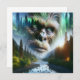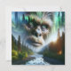 This blank notecard has a super cool double exposure illustration of bigfoot, a river, forest and mountains. Great art for sasquatch believers.
