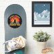 Bigfoot is looking happy as he walks along. This is a retro sunrise design in yellow, orange and red and looks great on a black or dark background.