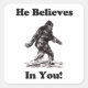 Bigfoot Sasquatch - He Believes In You Square Sticker