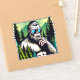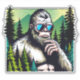 Curious Sasquatch that is hiding in the woods peeking out of the trees. Ai art done in a comic pop art style.