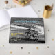 Black and white photograph of a bicycle placed against a guardrail of an embankment overlooking the sea. Design on hard cover guest book with text for retirement party to customise. You can easily change text (colour, font, size and position) by clicking the customise button. Available in spiral notebook too. Matching Retirement invitation.