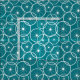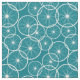 Deep turquoise blue fabric printed with a pattern of white bike wheels. You can change the background colour to suit your requirements.