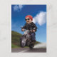 Baby dressed as a biker, popping a wheelie on a motorcycle