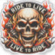 Biker Skull Ride to Live Live to Ride Fiery Graph