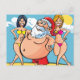 bikini beach santa claus holiday postcard