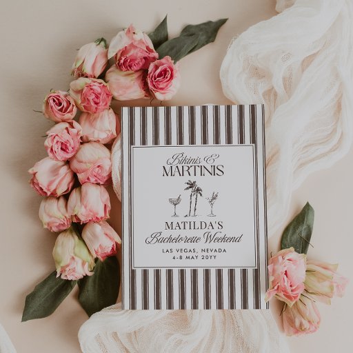 Bikinis and Martinis Elegant vintage bachelorette weekend party decor banner design. Elegant font choices and vintage pink striped backer design. Part of a matching collection.