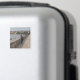 This square fridge magnet features the shipping port in Bilbao in Spain. A tourist walking around this scenic area on the way back to the cruise port.