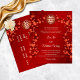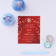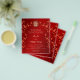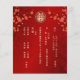 BUDGET paper. This version has the parent's names in the headline. Red cherry blossom branches and a gold double happiness symbol on a red background. With a traditional Chinese text on the backside.