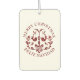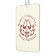 Add a festive and refreshing touch to your vehicle this holiday season with our custom bilingual car air freshener. Featuring a beautiful Nordic-inspired design in rich burgundy, this charming air freshener showcases an adorable pair of birds surrounded by delicate florals and a heart. The bilingual "Merry Christmas - Feliz Navidad" greeting makes it perfect for spreading holiday cheer in both English and Spanish-speaking communities. Personalise the back with your family name, business logo, or a custom message, making it a unique gift or seasonal marketing tool.