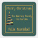 Bilingual Feliz Navidad Christmas Green Golden Square Sticker