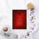 This modern Chinese wedding invitation features a golden artistic frame and a golden double happiness symbol on a shimmering red background. With a traditional Chinese text at the backside.