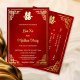This traditional Chinese wedding invitation features a golden Asian frame and a golden artistic double happiness symbol on a shimmering red background. With a traditional Chinese text at the backside. This version has the headline: "together with their families"