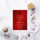 This traditional Chinese wedding invitation features a golden Asian frame and a golden artistic double happiness symbol on a shimmering red background. With a traditional Chinese text at the backside. This version has the parent's names in the headline.