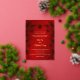 This traditional Chinese wedding invitation features a golden Asian frame, gold cherry blossoms and a golden artistic double happiness symbol on a shimmering red background. With a traditional Chinese text at the backside. This version has the parent's names in the headline.