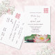 This floral wedding invitation features a watercolor painting of a lotus flower and a double happiness symbol in a matching pink tone on a white background. At the reverse side is a custom traditional Chinese text.
