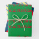 This design contains Bilingual "Merry Christmas" Feliz Navidad" Wrapping Paper Sheets, in three styles, beautiful and festive colours, green and red, blue and red and yellow and light blue.
