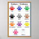 This bilingual (English/Spanish) paw print colour chart is great for displaying around any elementary, ESL, bilingual, or beginning Spanish classroom. This poster includes the following colours: red, blue, green, black, grey, brown, orange, purple, yellow, pink, and white.