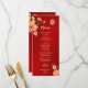 This traditional Chinese wedding menu card features red, orange an neutral peony flowers and a gold double happiness symbol on a shimmering red background. With custom bride and groom names, the wedding date and a custom menu text. With a custom traditional Chinese text at the backside.