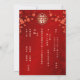 This version has the parent's names in the headline. Red cherry blossom branches and a gold double happiness symbol on a red background. With a traditional Chinese text on the backside.