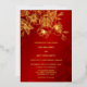 This elegant floral Chinese wedding invitation features a real gold foil line art flowers on a red background. With a traditional Chinese text on the backside.