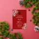 This modern Chinese wedding invitation features a real gold foil double happiness symbol and watercolor painted rose flowers on a red background. With a traditional Chinese text on the backside.