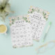 Esta elegante tarjeta de juego de bingo bilingüe para despedida de soltera en español e inglés presenta simples flores blancas de acuarela y una caligrafía escrita a mano. Con su estética simple y minimalista, es versátil y puede usarse para una despedida de soltera en primavera, verano, otoño o invierno. También sería genial para una despedida de soltera religiosa, una despedida de soltera cristiana, una despedida de soltera católica o una despedida de soltera mixta con hombres. Edite la plantilla utilizando los cuadros de plantilla de texto. Diseñado como parte de mi colección de despedida de soltera Peonías. Asegúrese de explorar los otros productos para crear una apariencia hermosa y coordinada para su fiesta. Si necesita cambiar fuentes o colores o reposicionar elementos, desplácese hacia abajo más allá de los cuadros de texto y haga clic en el botón azul "Editar usando la herramienta de diseño" para abrir la herramienta de diseño de Zazzle. Para agregar texto, cambiar la posición o cambiar las fuentes o los colores de las fuentes, haga clic en "Personalise" y "Edit using design tool". Si necesita ayuda adicional para ajustar esta plantilla, aproveche el servicio gratuito de Zazzle en https://www.zazzle.com/live o contácteme a través del sistema de mensajería de Zazzle. Tenga en cuenta que yo creo los diseños, pero Zazzle realiza toda la impresión y el envío en sus instalaciones de producción, por lo que si hay algún problema con su pedido, comuníquese con su atención al cliente al 1-888-892-9953 o https:// www.zazzle.com/about/ask.
