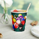 These paper cups have billiard balls pictured on them.