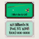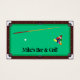 This business card features a pool table, with a pool stick, cue ball, and pool balls. The image is repeated on the back, with two transparent images on top. All of the text is completely customisable.