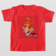 The t-shirt feels and looks great quality, a good thick cotton. It will be a little big for my son, but that means he will be able to wear it and not out grow it too soon. The print was as described on the order when personalised. True size, shape and colour T-shirt- thanks.