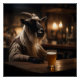 In a quirky twist of reality, a dressed Billy goat sits confidently at the counter of a rustic bar. Its coarse fur and spiraled horns give it a rugged charm as it leans toward a glass of beer, The bar's warm, dim lighting casts a golden glow over the wooden counter, This whimsical moment captures a delightful blend of mischief and humor, where the unexpected becomes the centerpiece of the evening.