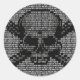 Skull and crossed bones danger or piracy sign made up of binary ones and zeros machine code. Concept for online piracy, hacking, internet fraud or similar threats.