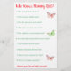 Baby girl and her puppy dog baby shower game. Bingo card on one side and the other has, "Who Knows Mommy Best" Game.